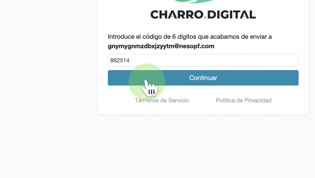 Recibiremos un código de acceso a nuestro correo. Escribimos el código y presionamos en Continuar